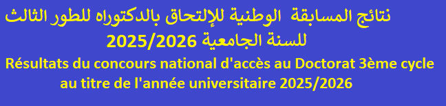 Results of the fourth day : Saturday 02-07-2026 Faculty of Electrical Engineering Filière : Electrotechnique Speciality: Réseaux Electriques Speciality: Electrotechnique Industrielle Filière : Télécommunication Speciality: Réseaux et Télécommunications Speciality: Systèmes des Télécommunications Faculty of Physics Speciality : Energétique et Mécanique des Fluides Speciality : Physique des Matériaux Speciality : Physique des Rayonnements Speciality : PhYsique Théorique Faculty of Biological Sciences Filière : Biotechnologie Speciality: Biotechnologie et Valorisation des plantes Speciality: Biotechnologie et Pathologie Moléculaire