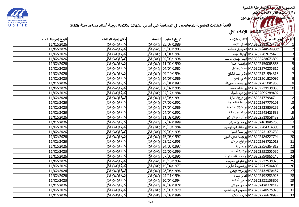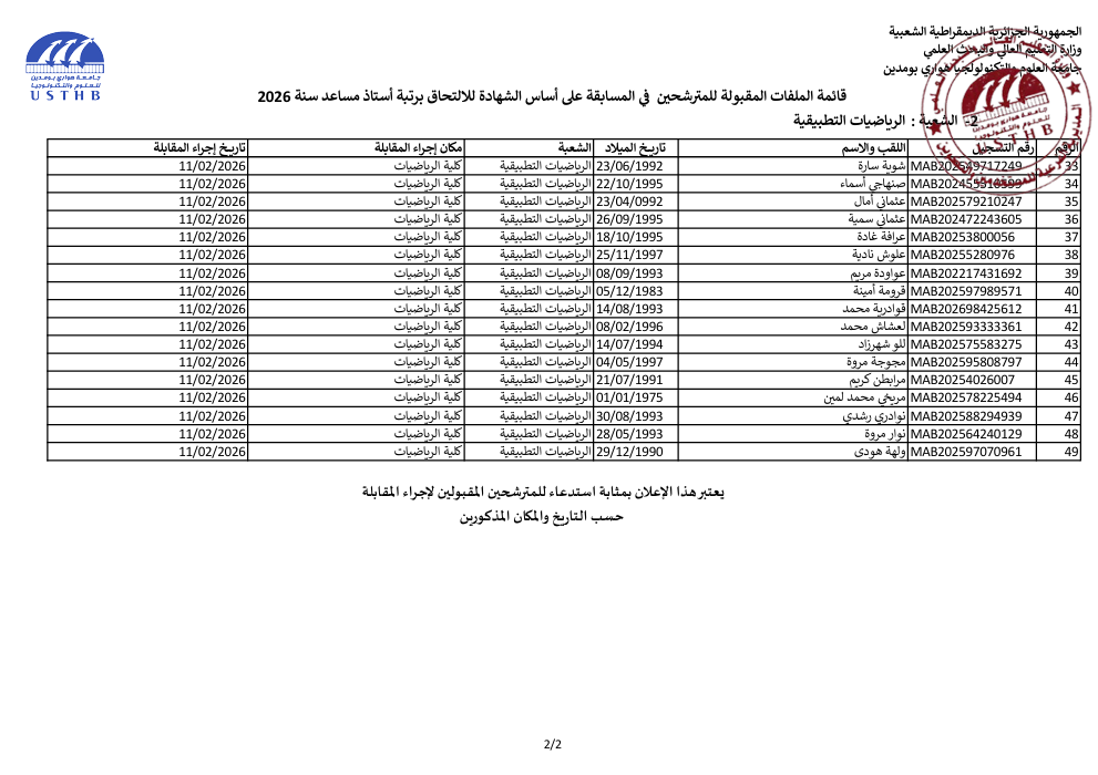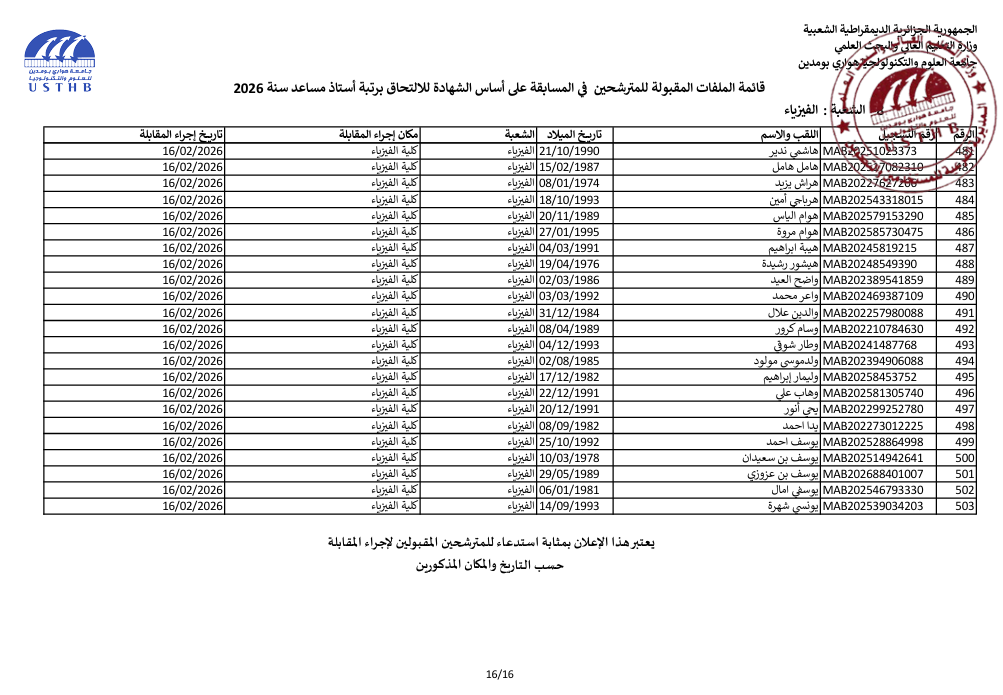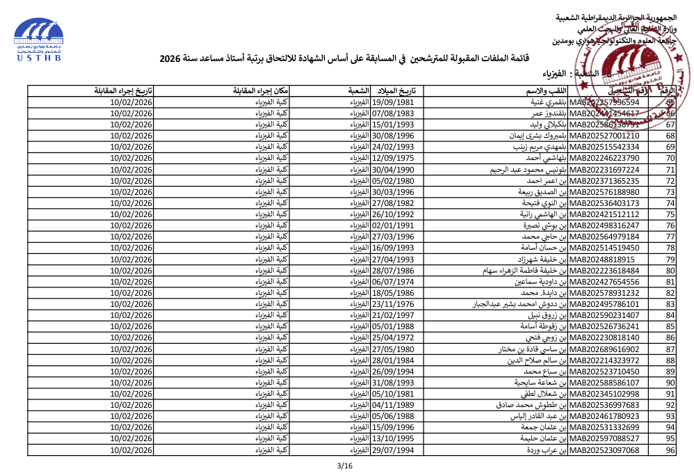 list of accepted candidates: assistant professor 2025 2nd session