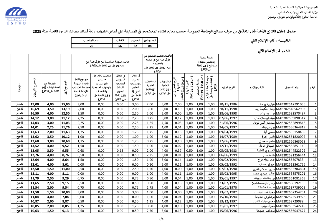 preliminary results recruitment assistant professor 2025 second session: computer sciences