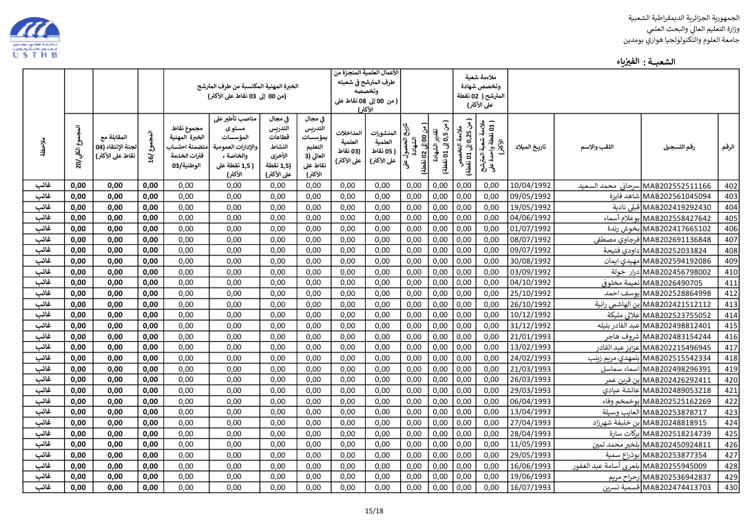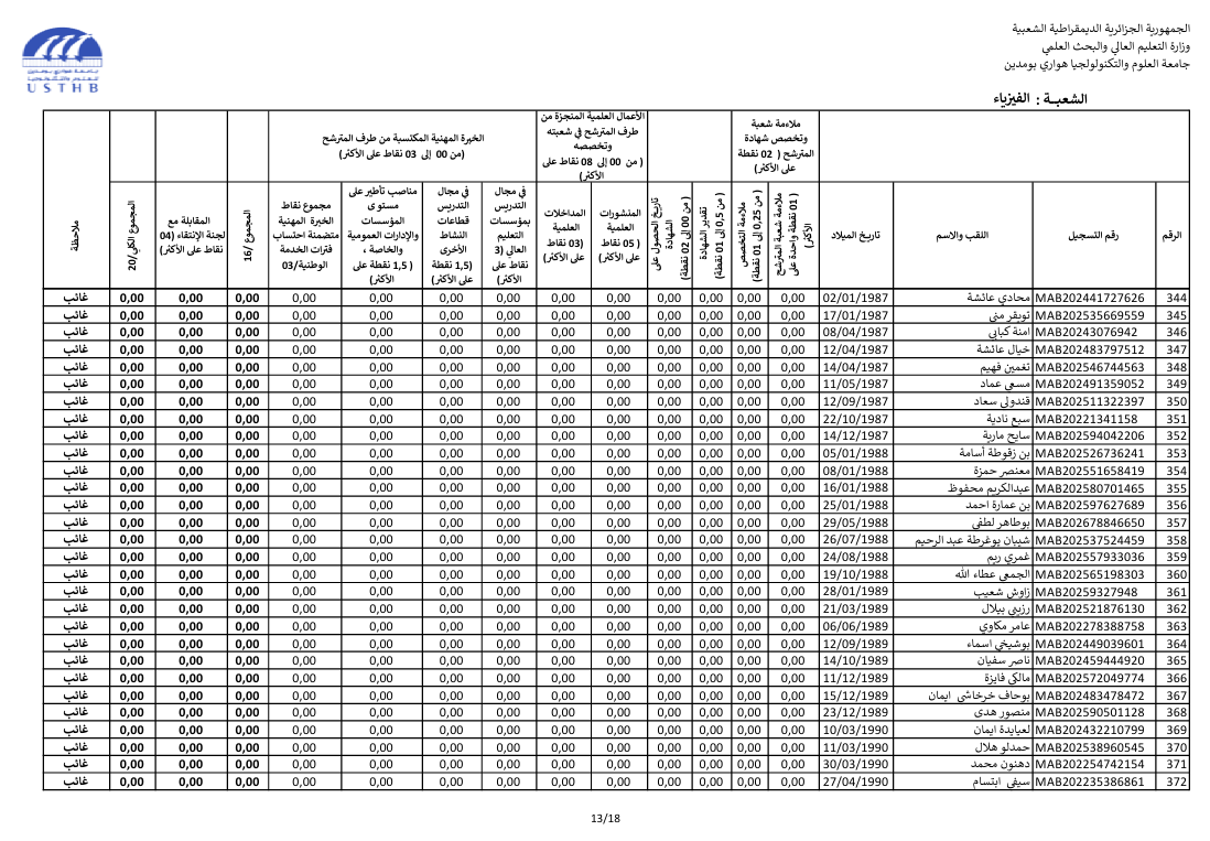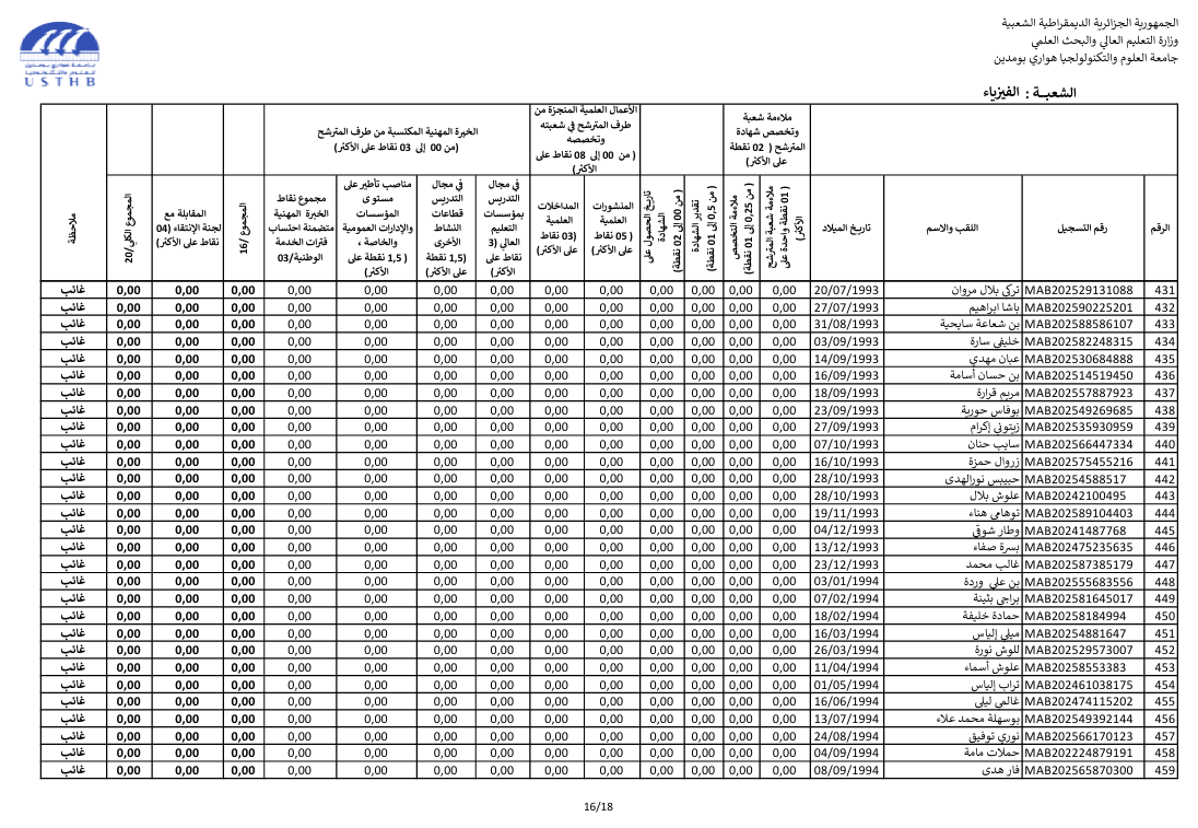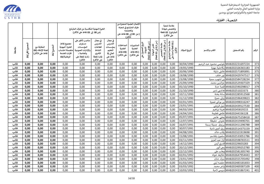 register at the usthb