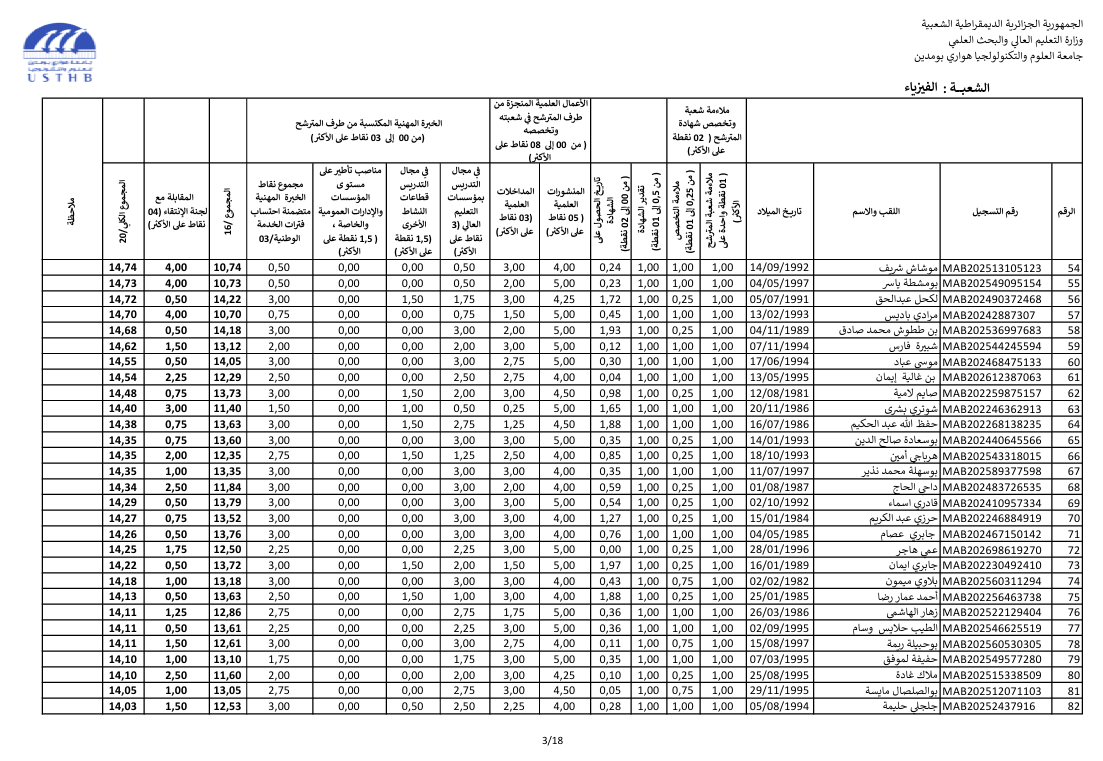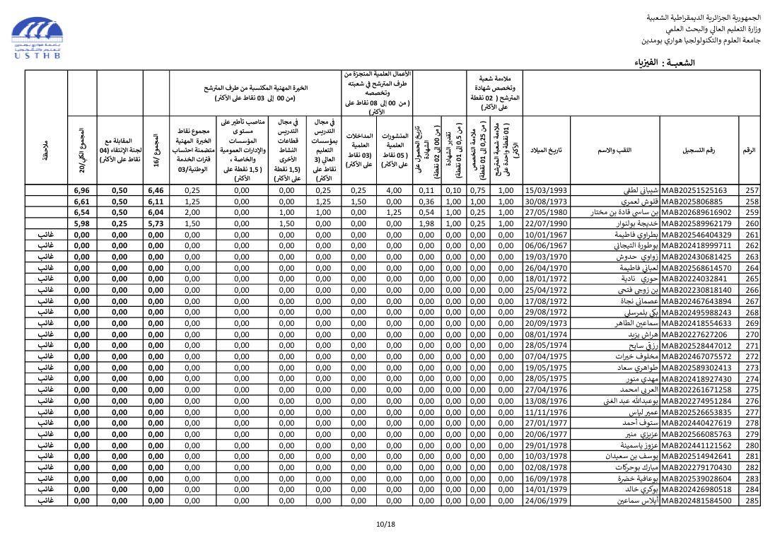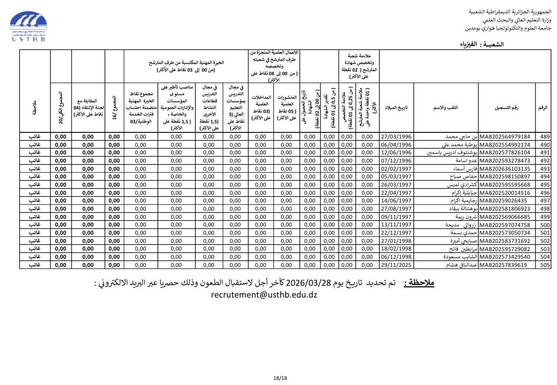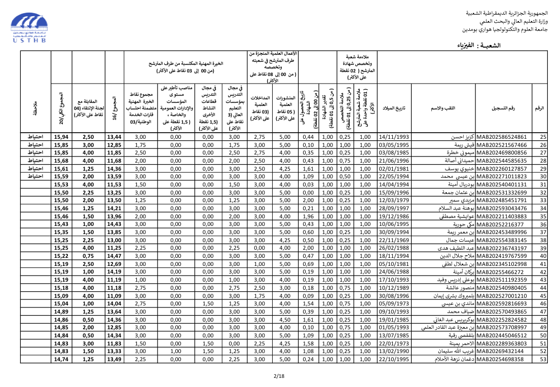 preliminary results recruitment assistant professor 2025 second session: physics