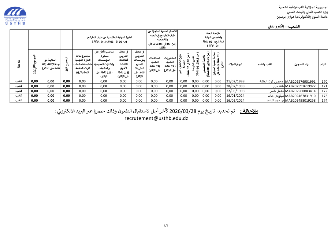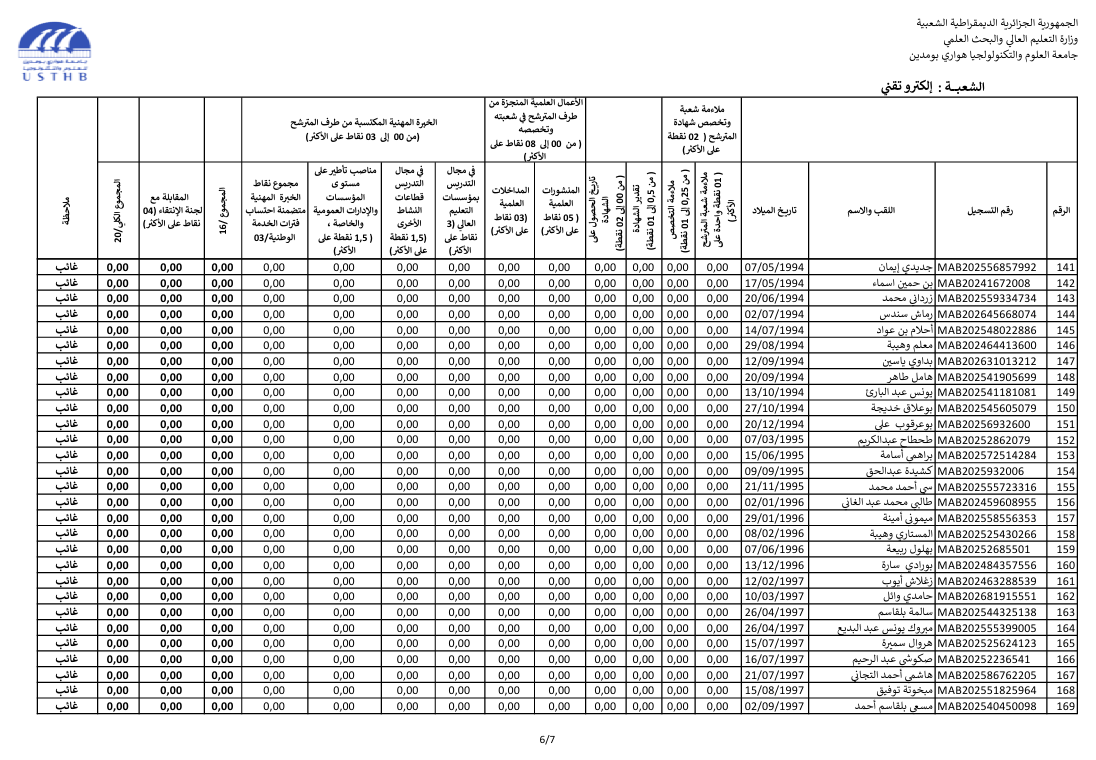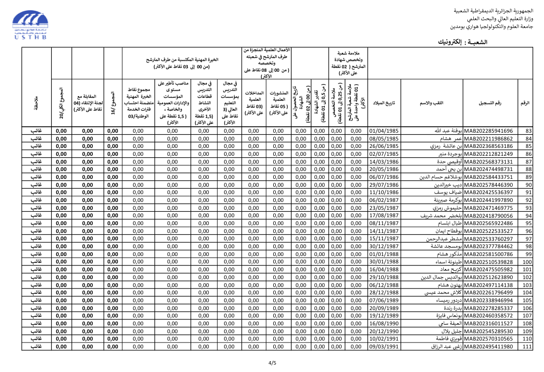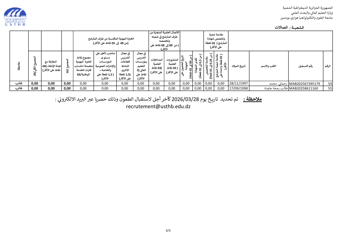 register at the usthb