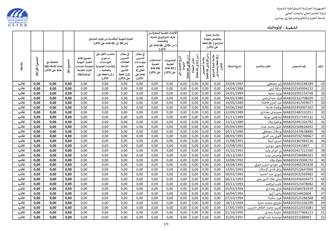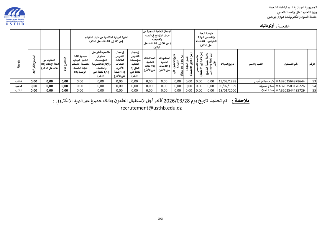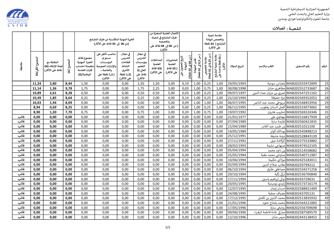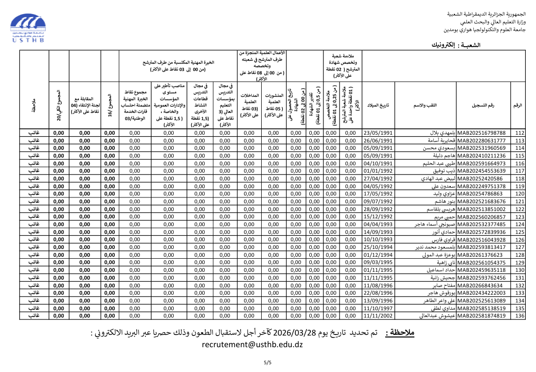 register at the usthb