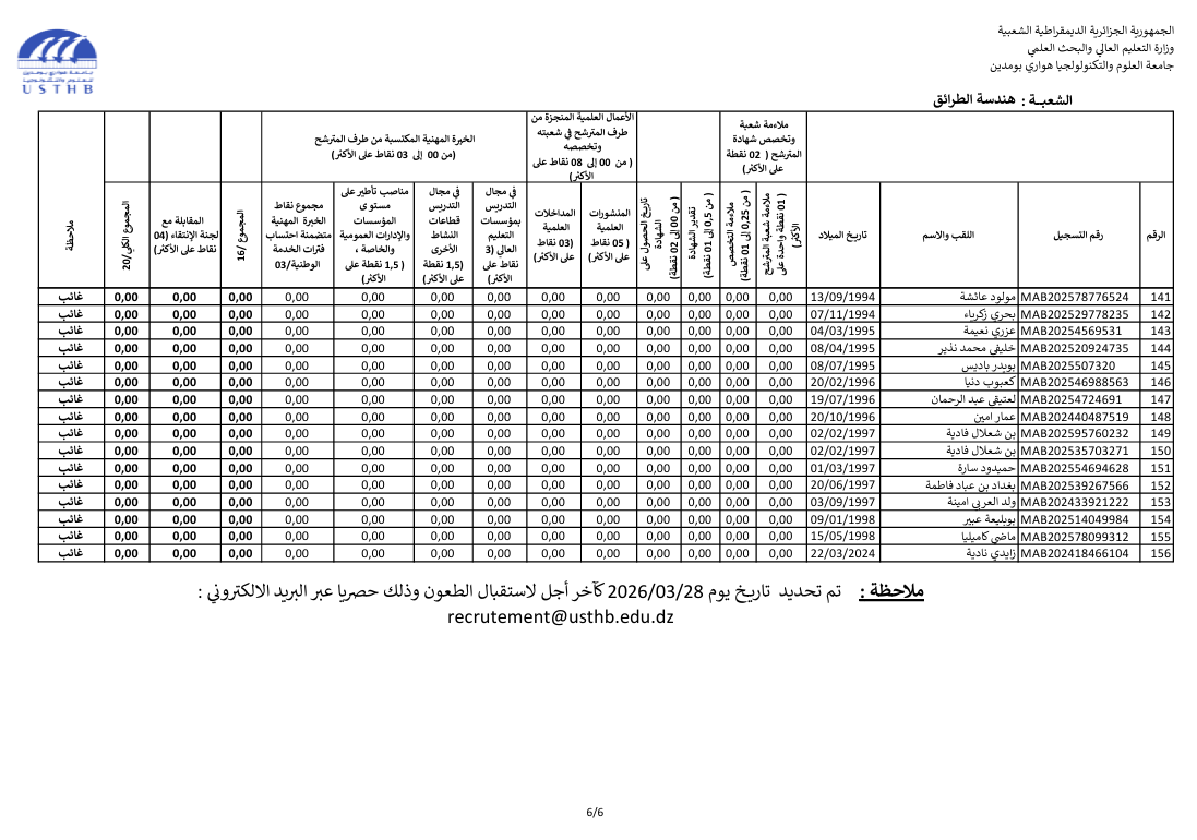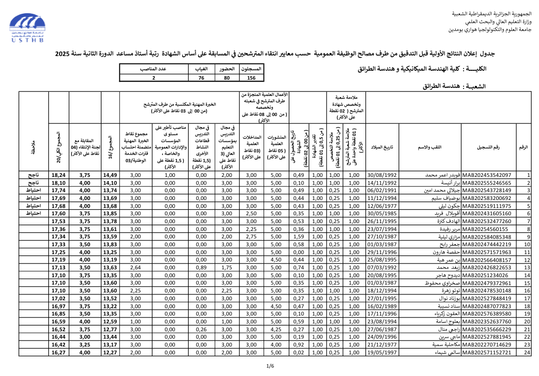 preliminary results recruitment assistant professor 2025 second session: process engineering